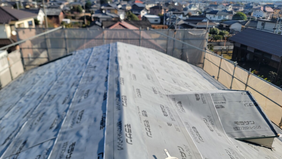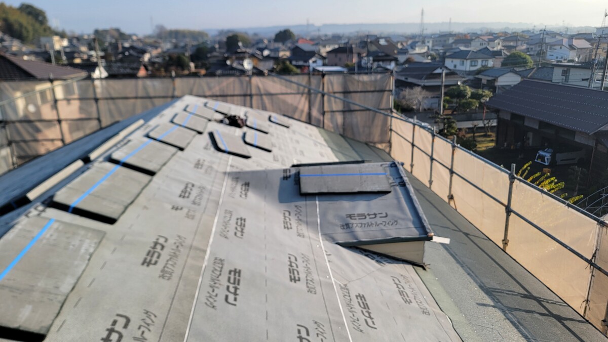 また古くなった屋根下地材を改質アスファルトルーフィングで補強しました。